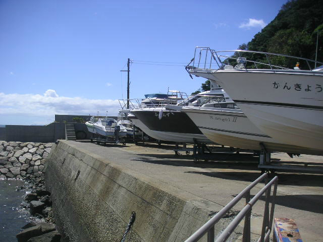 この某マリーナさんにて買取したボートを上架して頂き、トラックで広島まで