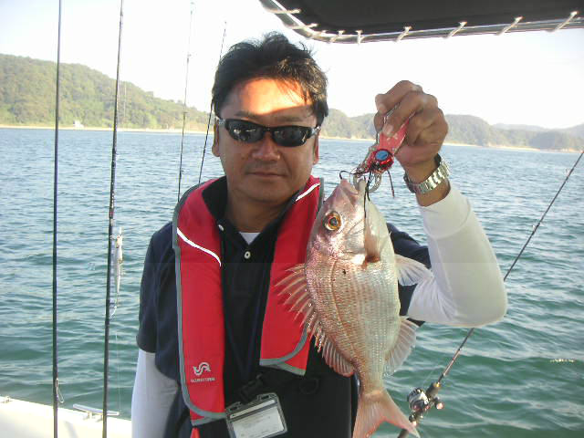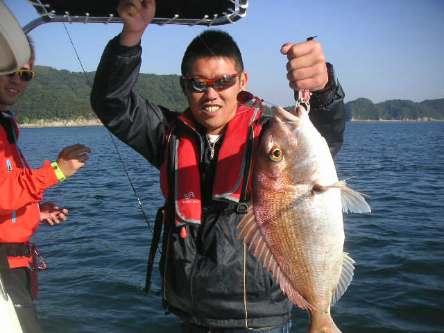 すぐさま鯛ラバを投入すると左舷側で釣っていた仲間に待望のアタリが来ました♪♪バラさない様に慎重にやり取りし最初の1匹目をGet