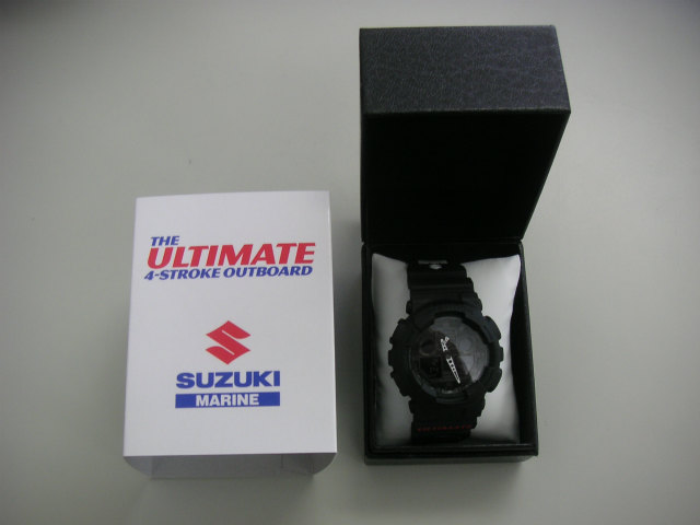 おはようございます。 昨日は『春一番』が広島も吹きまして、天気は良かったのですが 気温が上がらず、常に10㍍程の風が吹いてまして海上は大時化でした。 さて先日、販売したエンジンのキャンペーンプレゼントのG-SHOCK スズキマリン様が届けて頂きました!