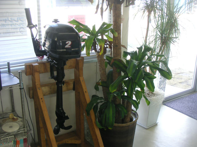 でもって、私にもプレゼント???(笑) ではありませんが、DF2(2馬力)を店頭に飾って頂きました! 3月末に買取みたいな話をする為の準備なのでしょうか?(汗)