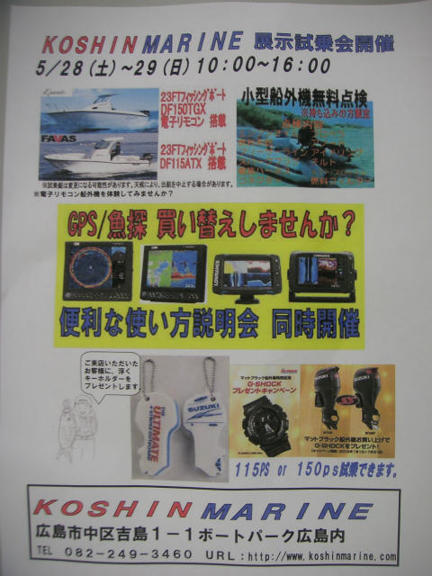 5月28日(土)29日(日)の両日、ボートパーク広島さん、スズキマリンさんの