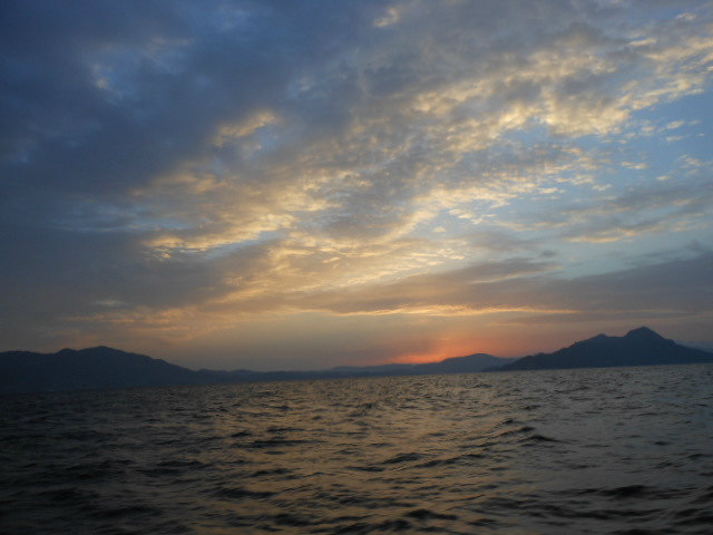 陽が昇り始めた頃から北東の風が吹き始め、海も少々荒れ模様 ![[worried]](http://www.koshinmarine.com/modules/xpwiki/image/face/worried.png)