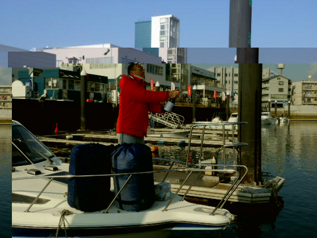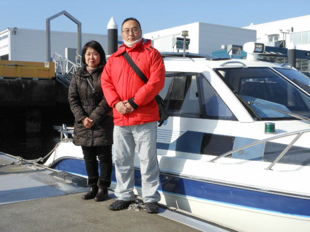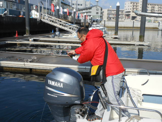 先週の21日土曜日大安吉日、中古艇の進水式を行いました! 先ずは船首にお神酒を奉げ 引き続き、船尾(エンジン)に奉げ 私の発声にてオーナー様ご夫婦、ボートパークスタッフで乾杯! 最後は記念撮影にて進水式を終了。 船名:グランパス、今回、初めてボートを所有という事もあり 先ずは係留場所のロープやフロートを設置し、商品説明後 オーナー様に付き添いながらの操船トレーニング! ご家族で出航される事が多くなるそうです。 グランパスの航行の安全を祈念するとともに、しっかりサポートさせて頂きます。