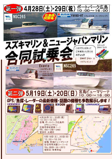 ニュージャパンマリン/スズキマリンの合同試乗会を開催致します。